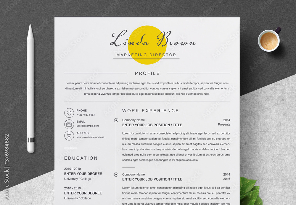 Adobe Stock Resume with Yellow Accent 419469651