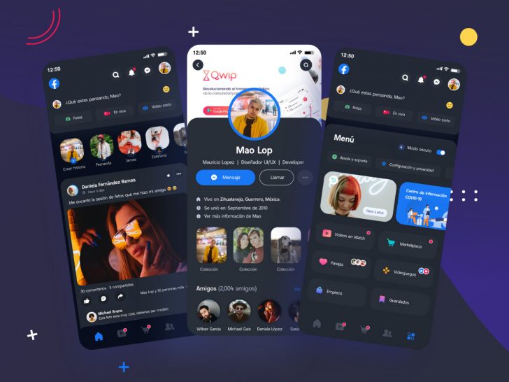 Free Facebook App XD Redesign Dark Mode Concept Xd File
