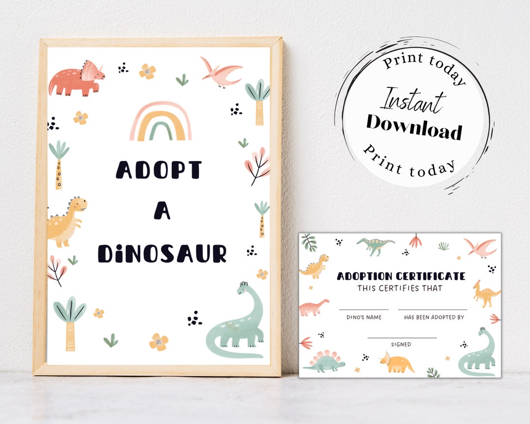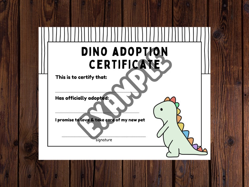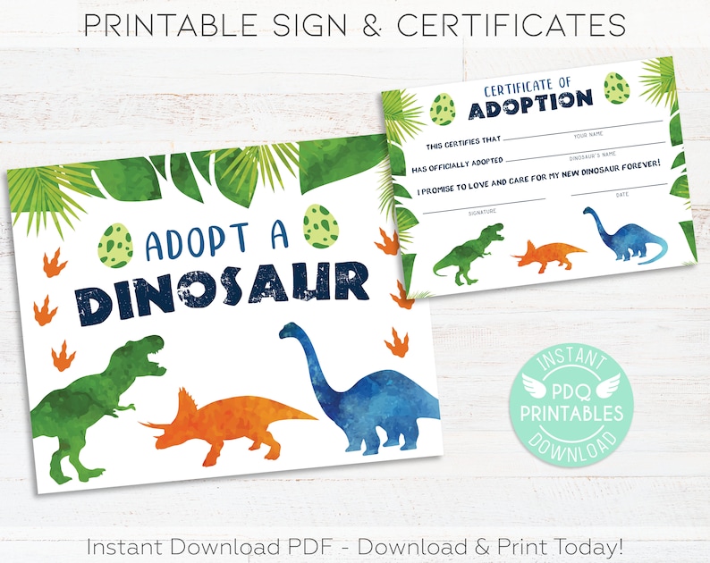 Adopt a Dinosaur Sign Dinosaur Adoption Certificate Instant Download