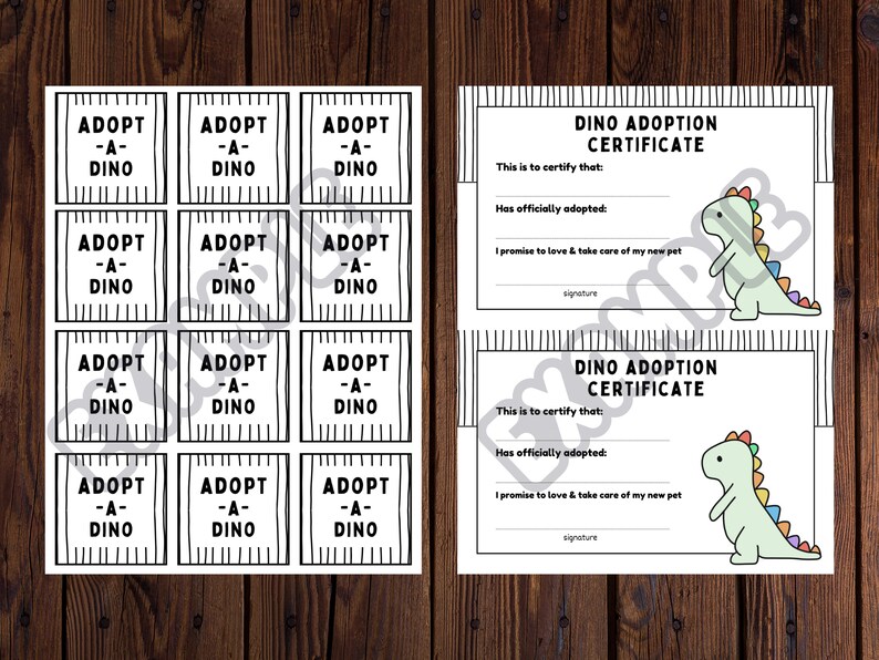 Adopt a Dinosaur Printable Sign and Certificate Dinosaur Etsy México
