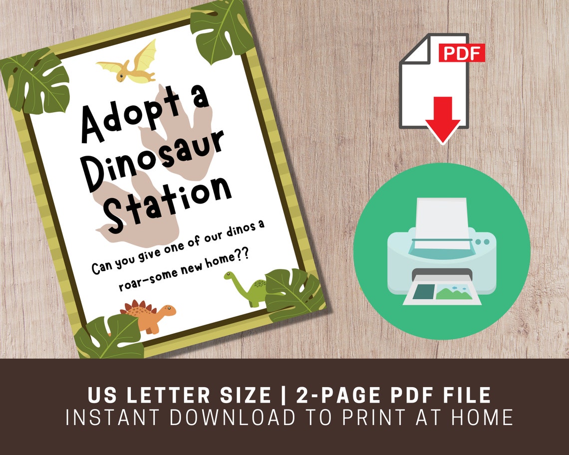 Adopt a Dinosaur Printable Sign Dinosaur Adoption Etsy