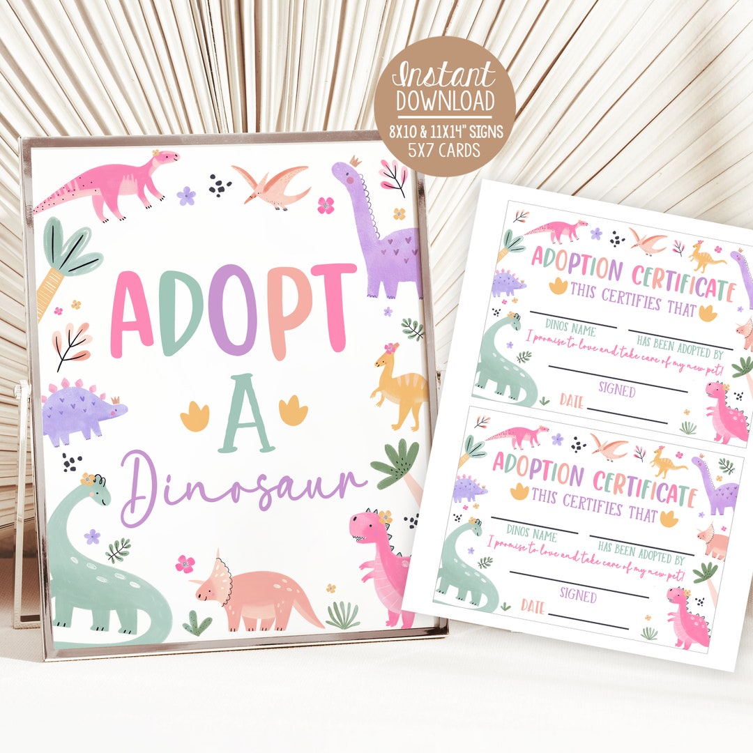 Adopt a Dinosaur Printable Sign and Certificate Girl Modern Etsy