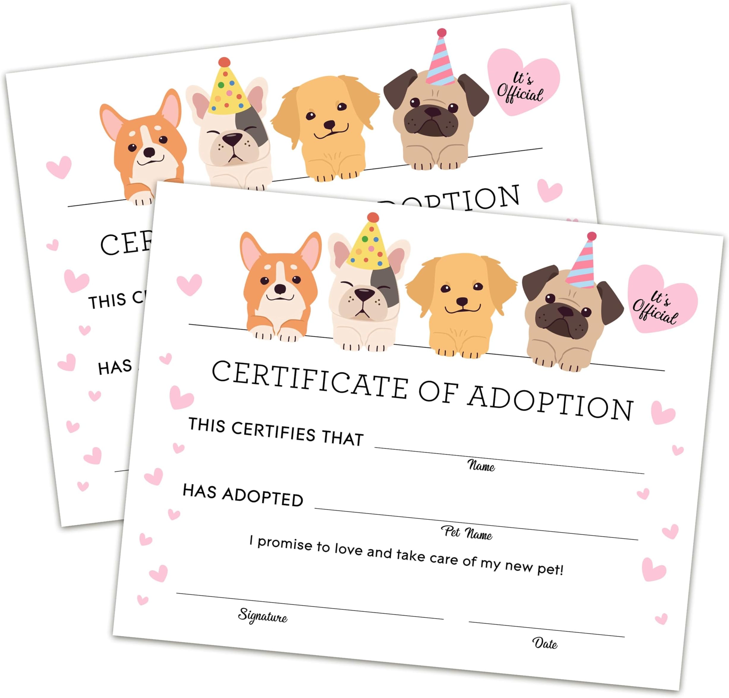 Adopt a Pet certificate printable Dog adoption party Pet adoption