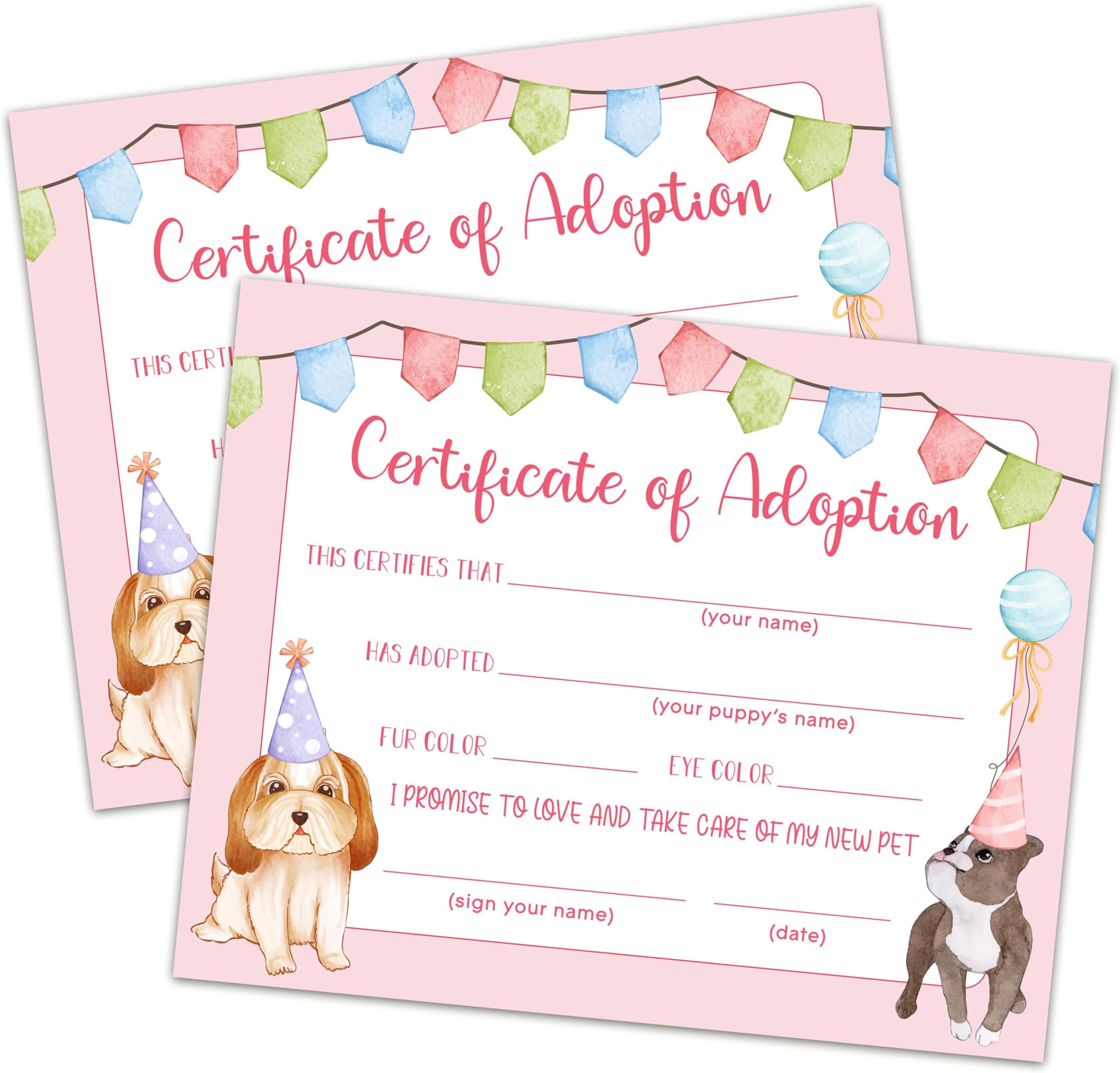 Amazon com : Pet Adoption Certificate Adopt A Pet Certificate for Girl