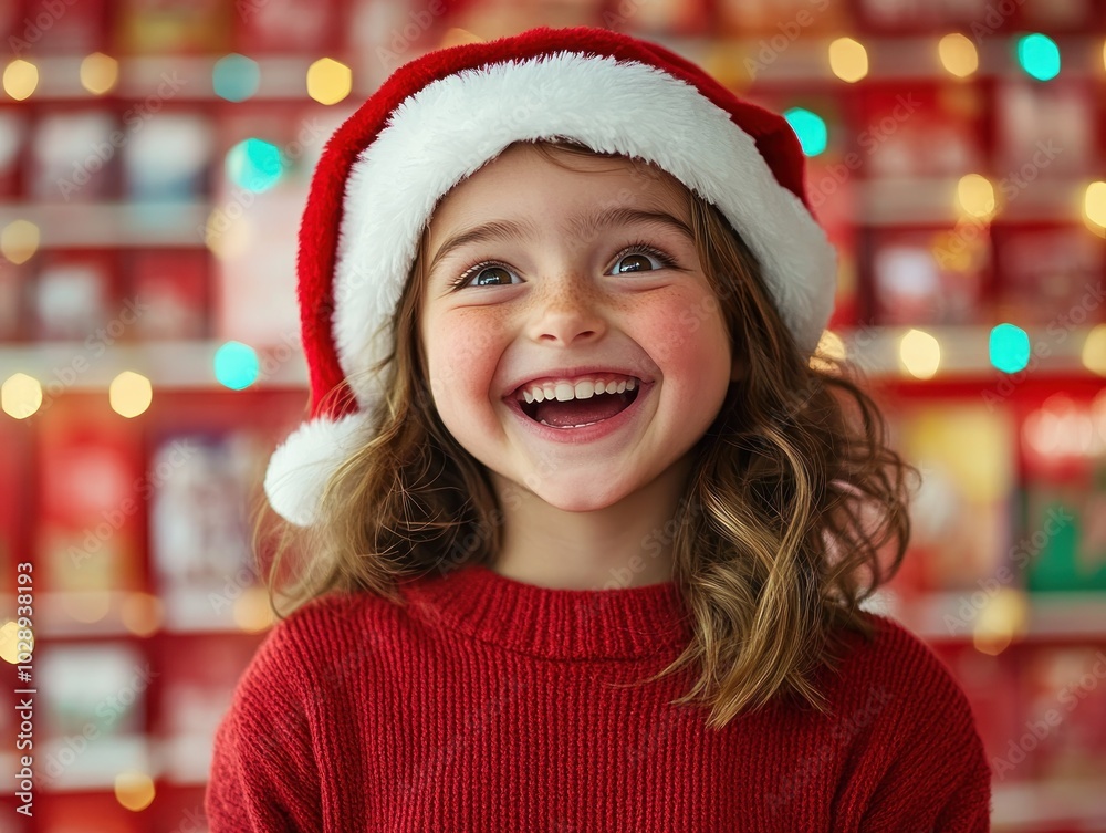 Adorable Little Girl in Santa Hat Opens Advent Calendar Door with