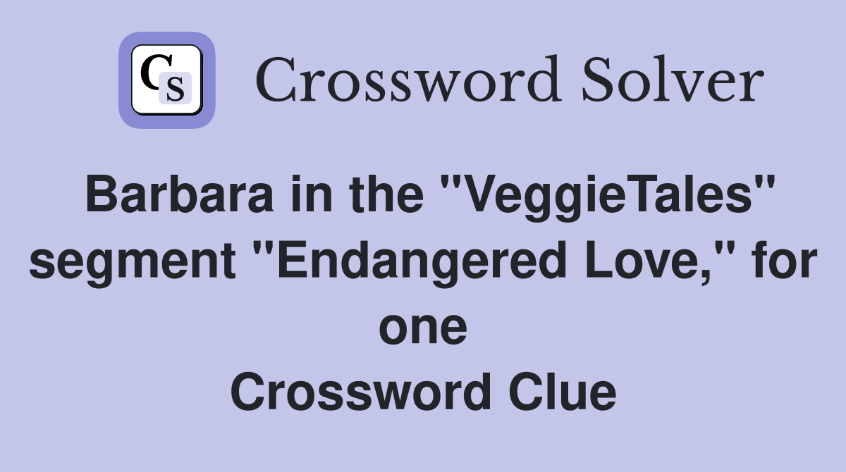 Barbara in the quot VeggieTales quot segment quot Endangered Love quot for one