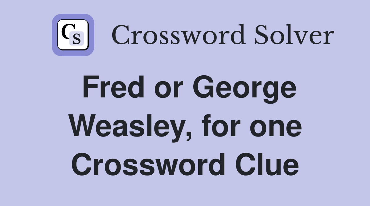 Fred or George Weasley for one Crossword Clue Answers Crossword Solver