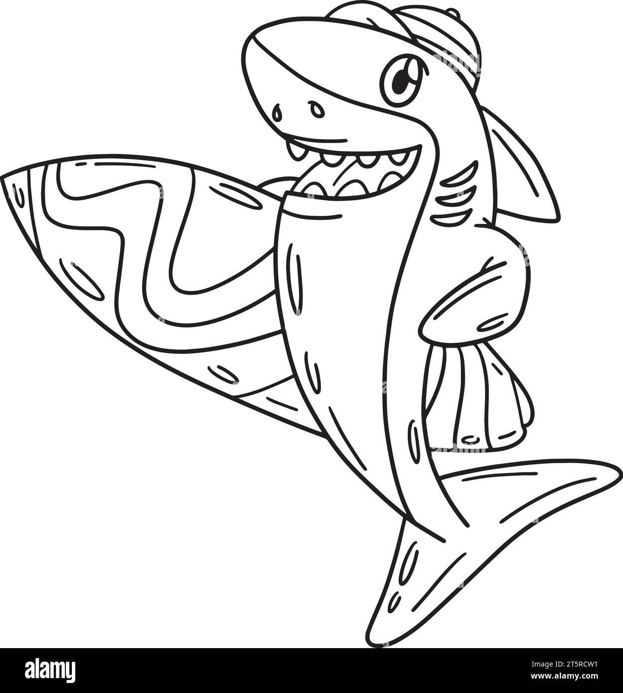 Shark with a Surfboard Isolated Coloring Page Stock Vector Image Art