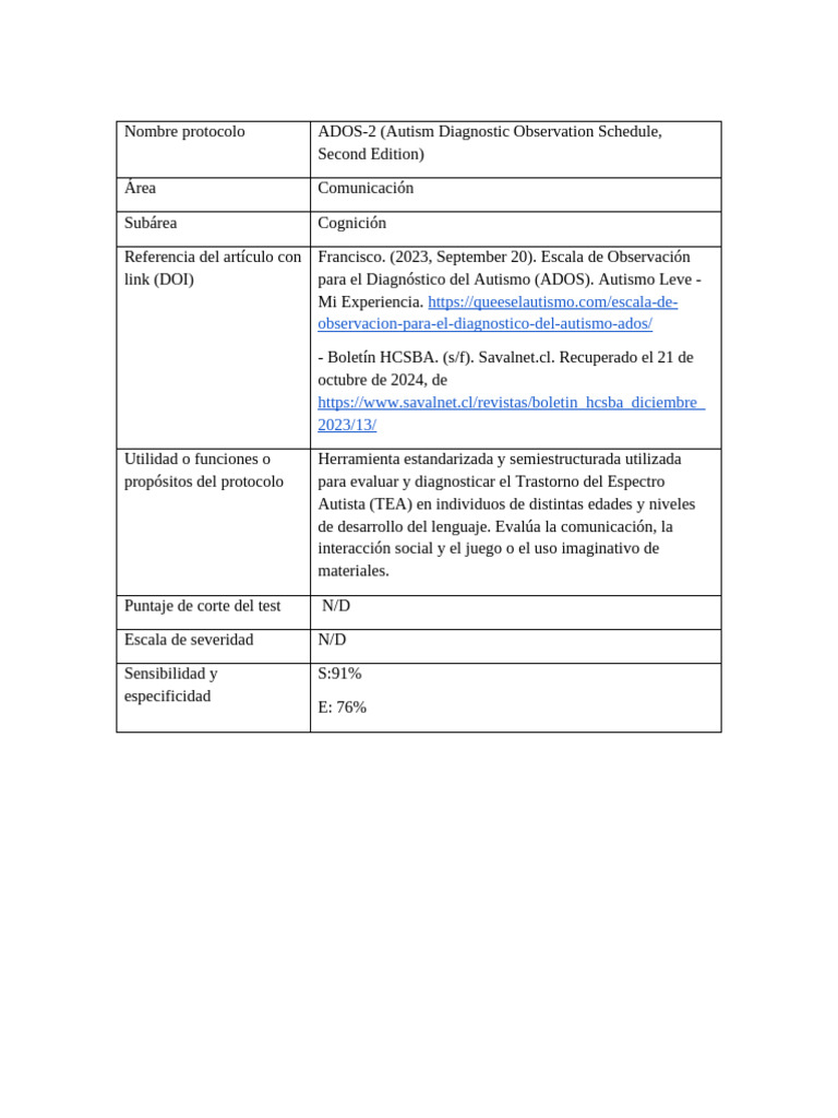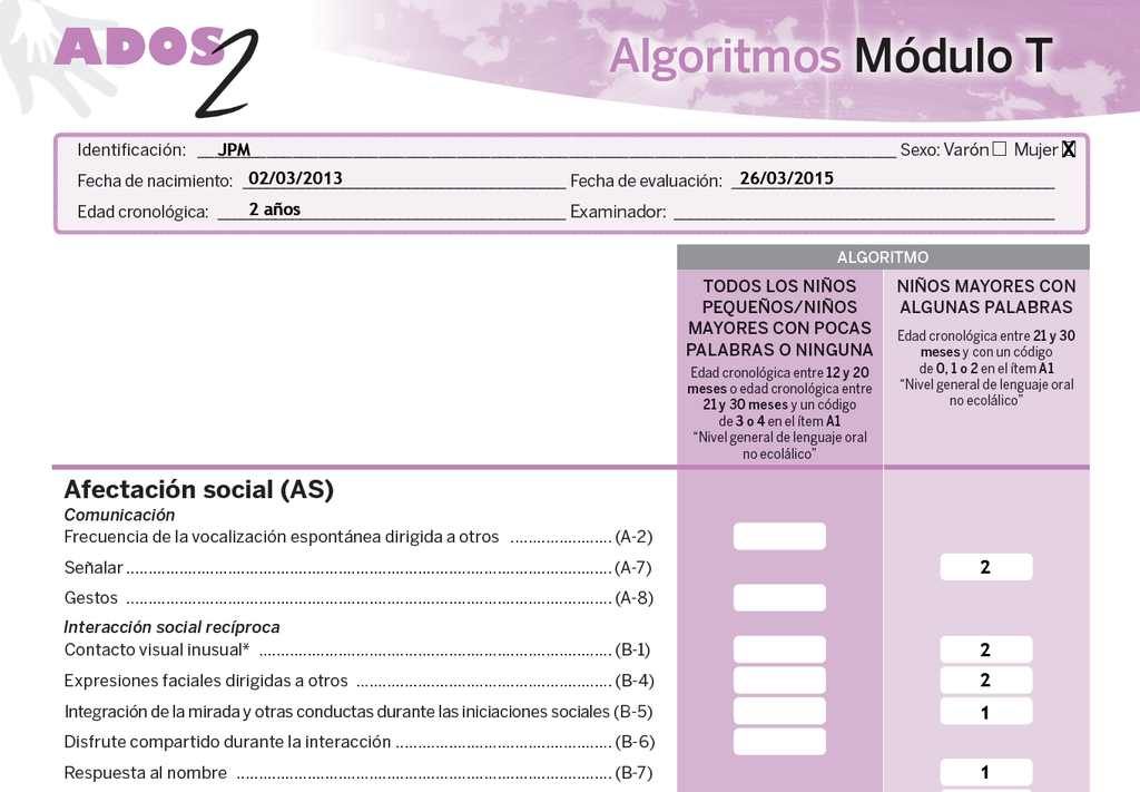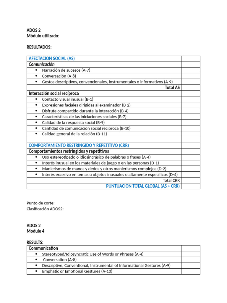 CORRECTOR ADOS 2 Escala para el Diagnostico del Autismo