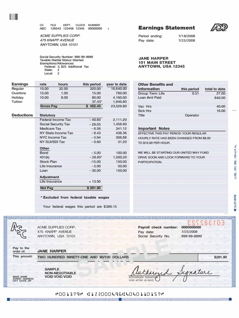 Adp Pay Stub Template PDF Payroll Tax Income Tax In The United States
