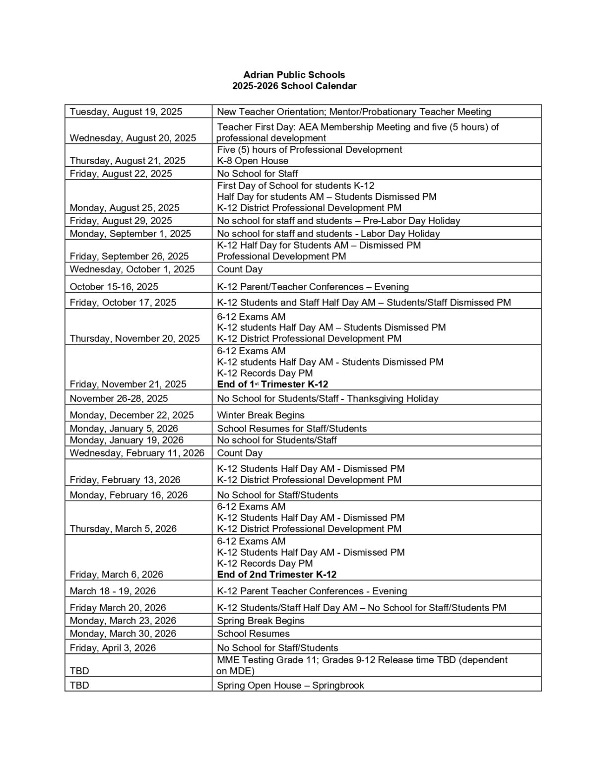 Adrian Public Schools Calendar 2025 Schoolcalendars net