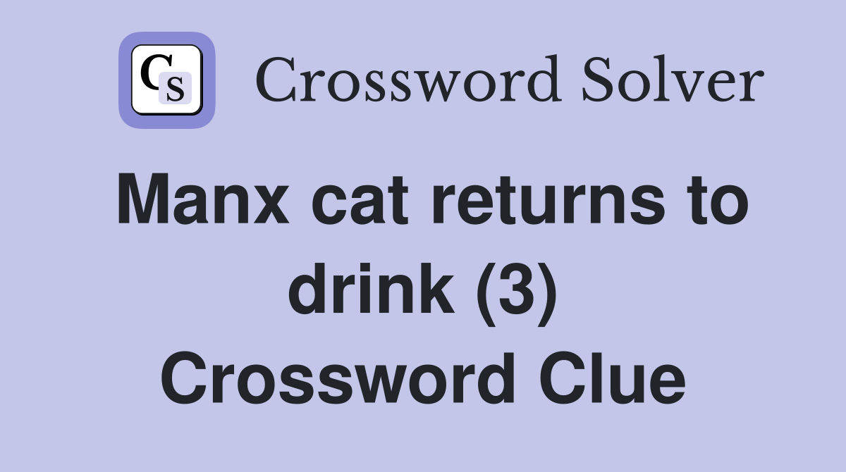 Manx cat returns to drink (3) Crossword Clue Answers Crossword Solver