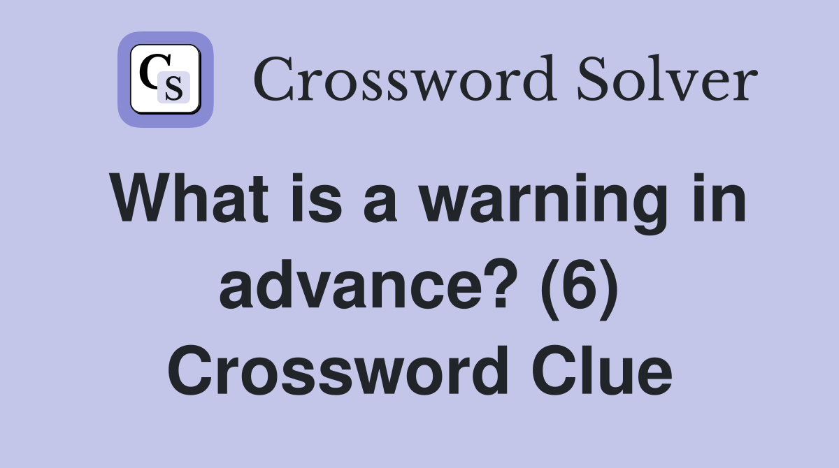What is a warning in advance? (6) Crossword Clue Answers Crossword