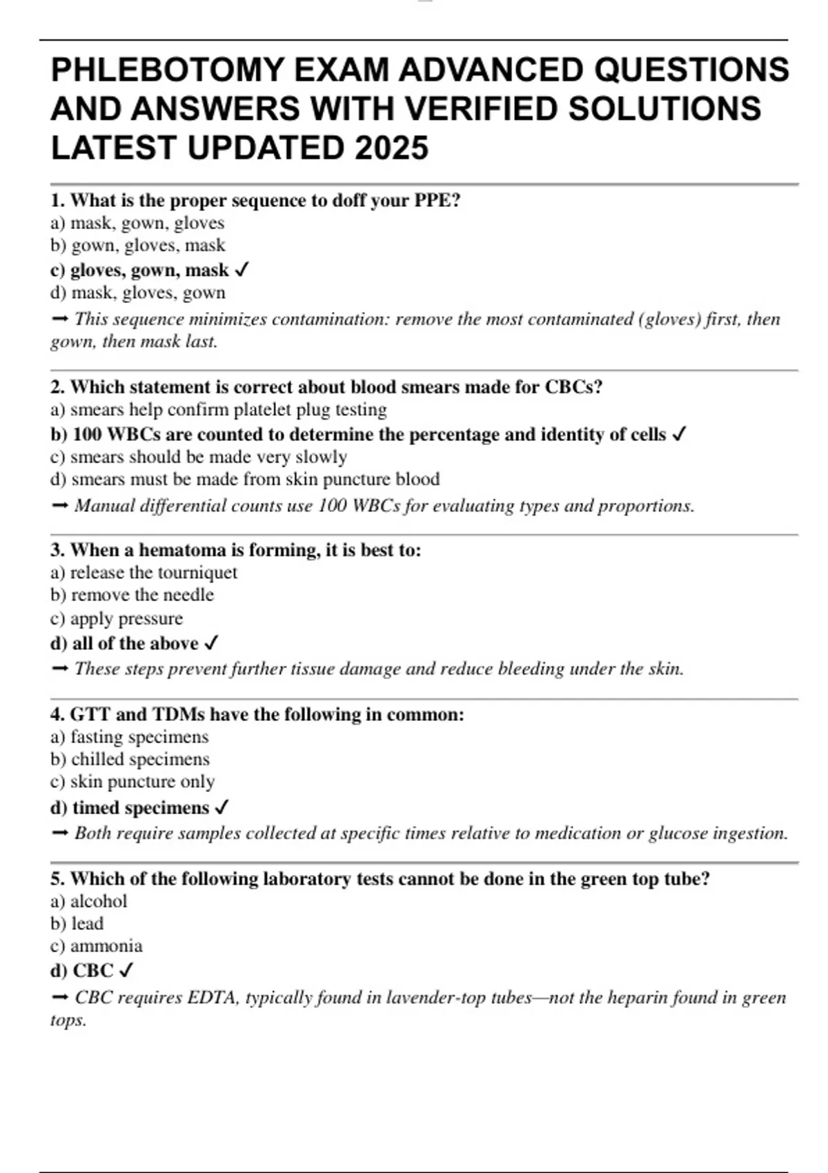 PHLEBOTOMY EXAM ADVANCED QUESTIONS AND ANSWERS WITH VERIFIED SOLUTIONS