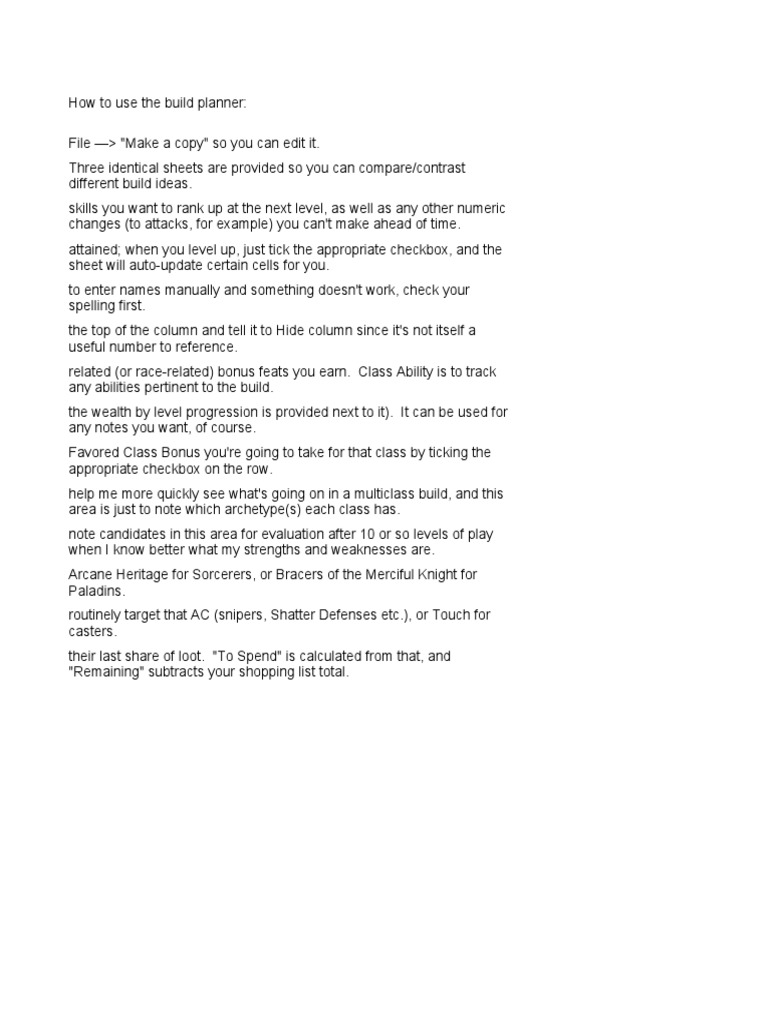 Pathfinder Level Plan Template (Reddit) PDF Role Playing Games