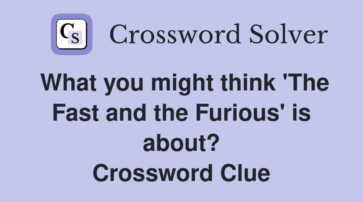 What you might think #39 The Fast and the Furious #39 is about? Crossword