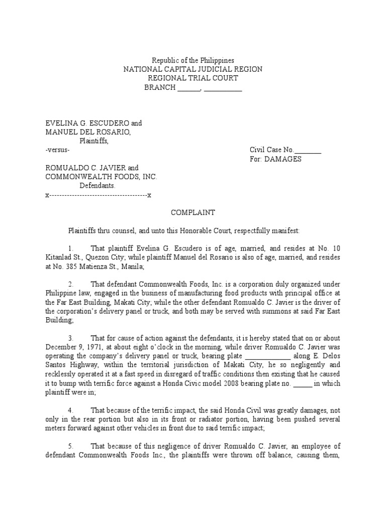 Property Damage Complaint Sample Complaint For Property Damage Sample