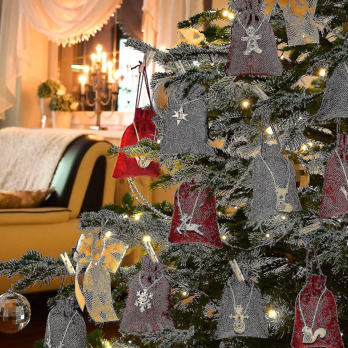 24pcs Christmas Advent Calendar Bags Burlap Drawst Grandado