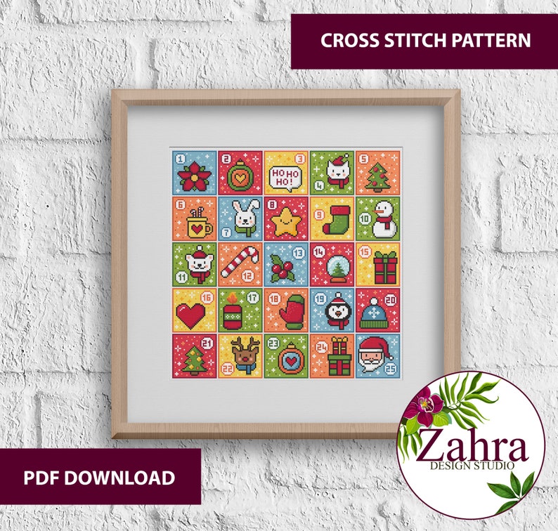 Christmas Advent Calendar Cross Stitch Pattern PDF Inspire Uplift
