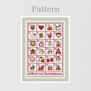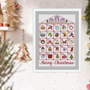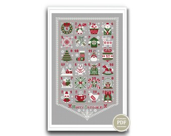 Advent Calendar Cross Stitch Pattern Merry Christmas Hand Embroidery