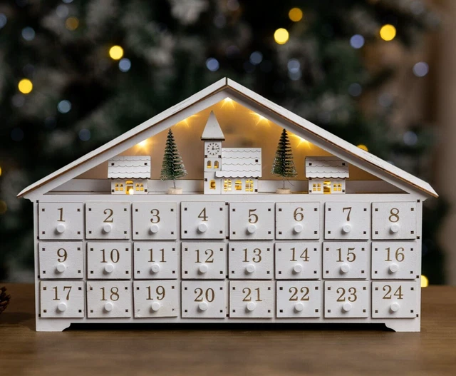CHRISTMAS ADVENT CALENDAR Decoration Wooden Village LED Countdown 24