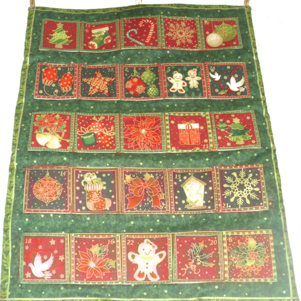 Fabric Advent Calendar Wall Hanging with Red and Green Stars