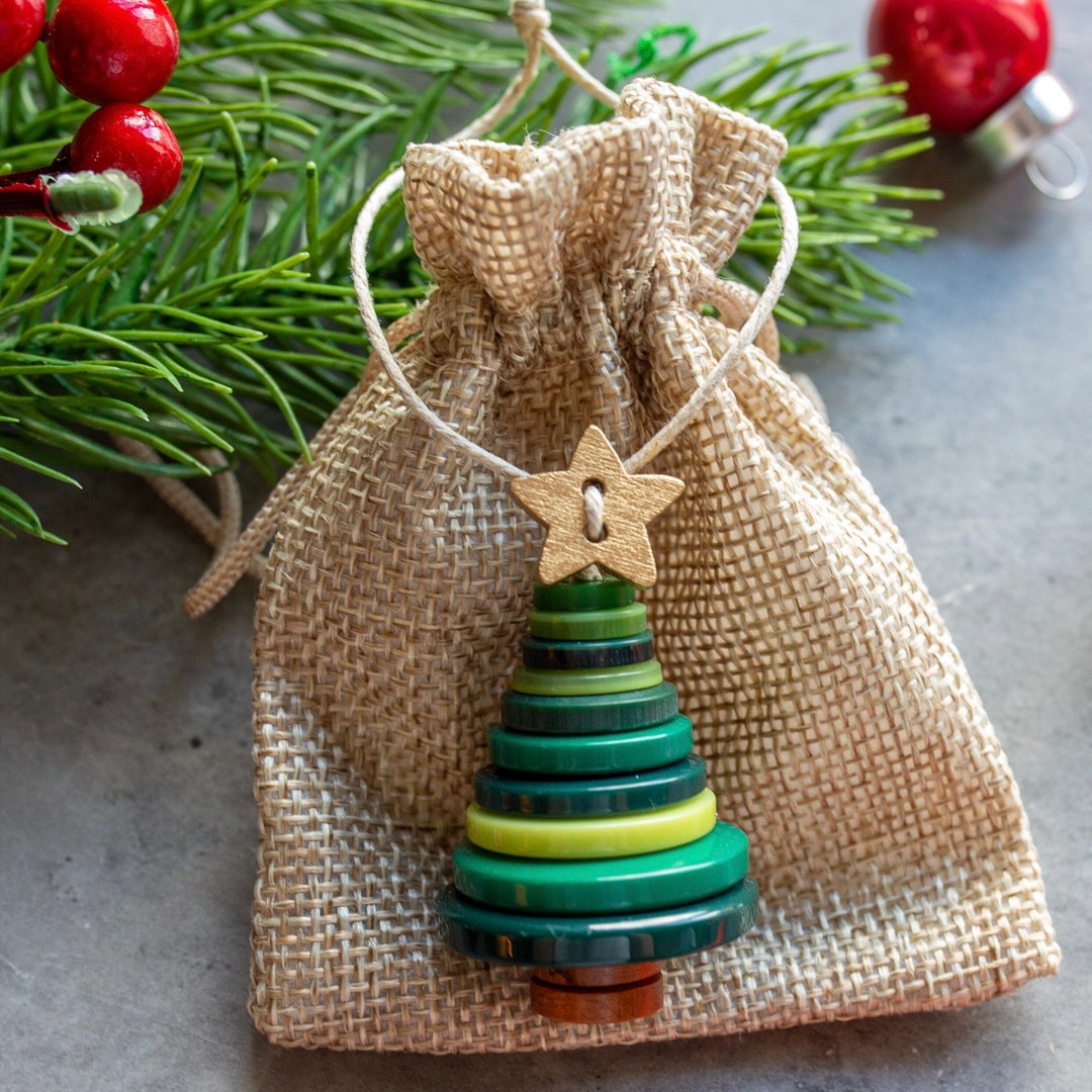 Handmade Button Christmas Tree Decoration Gift Tag Cracker and Advent