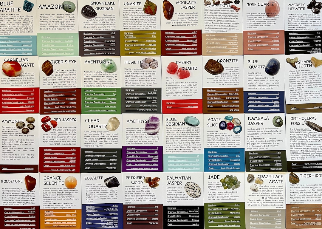Set of 28 Gemstone and Fossil Information Cards Great for Alternative
