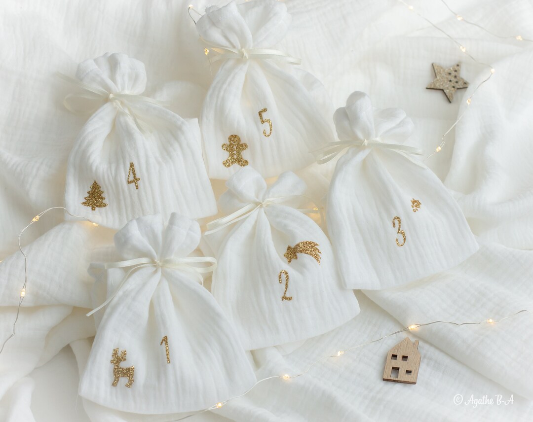 DIY Advent Calendar Kit Set of 24 Cotton Pouches (4x5 Inch