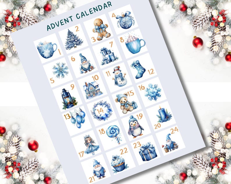 30 Blue Advent Calendar Printables Blue Christmas Countdown Blue