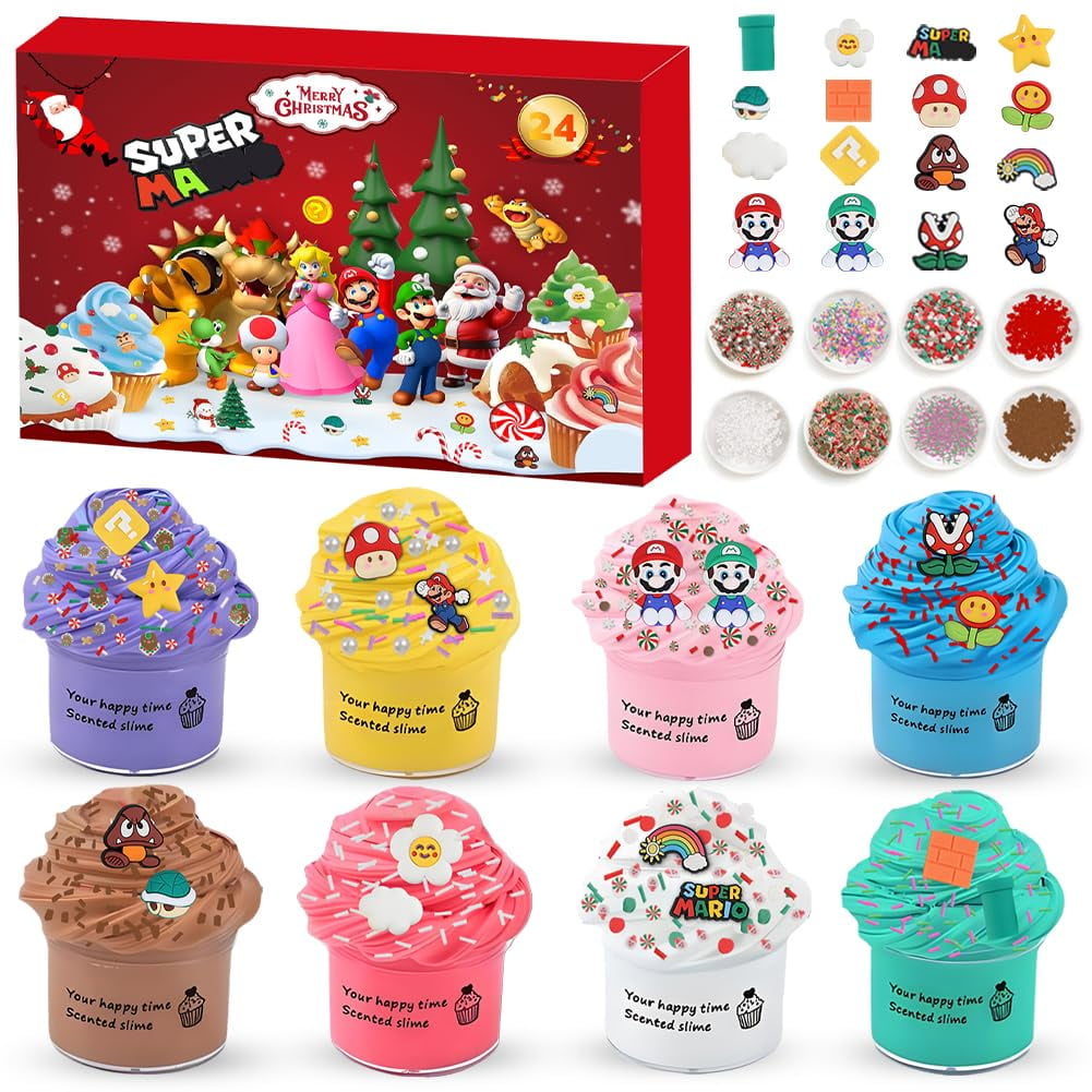 Slime Advent Calendar 2024 with Charms Kit Red Super Bro Party Favors