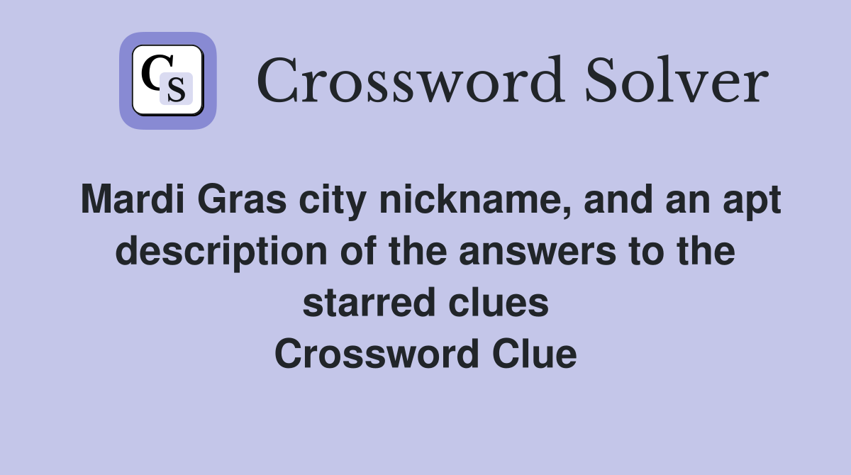 Mardi Gras city nickname and an apt description of the answers to the