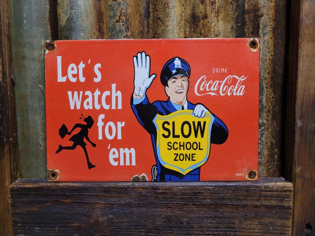 VINTAGE COCA COLA 1959 Porcelain Advertising Sign Gas Pump Plate Motor