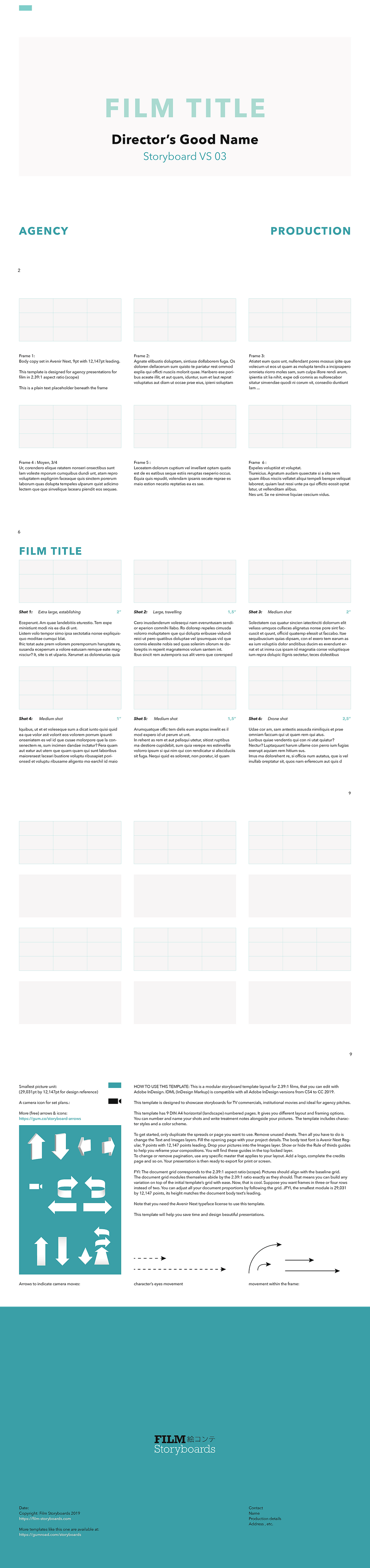 InDesign Advertising Storyboard Template 2 39:1 (scope) Avenir Light