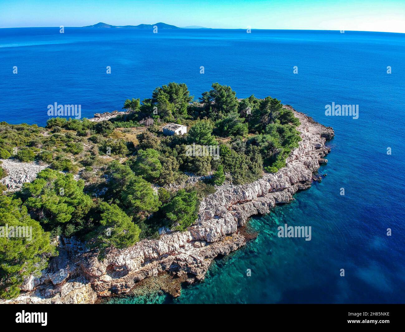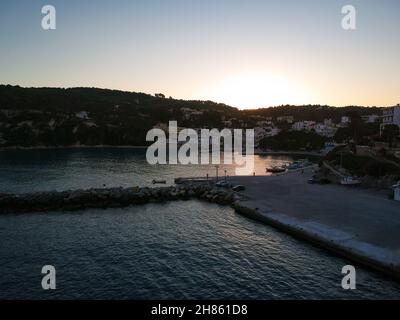 Aerial panoramic view over Patitiri the capital town of Alonnisos