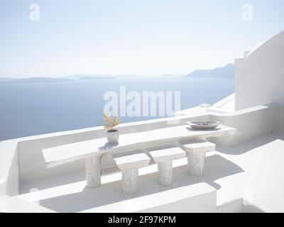 Cycladic architecture and the aegean sea in Santorini Greece Stock