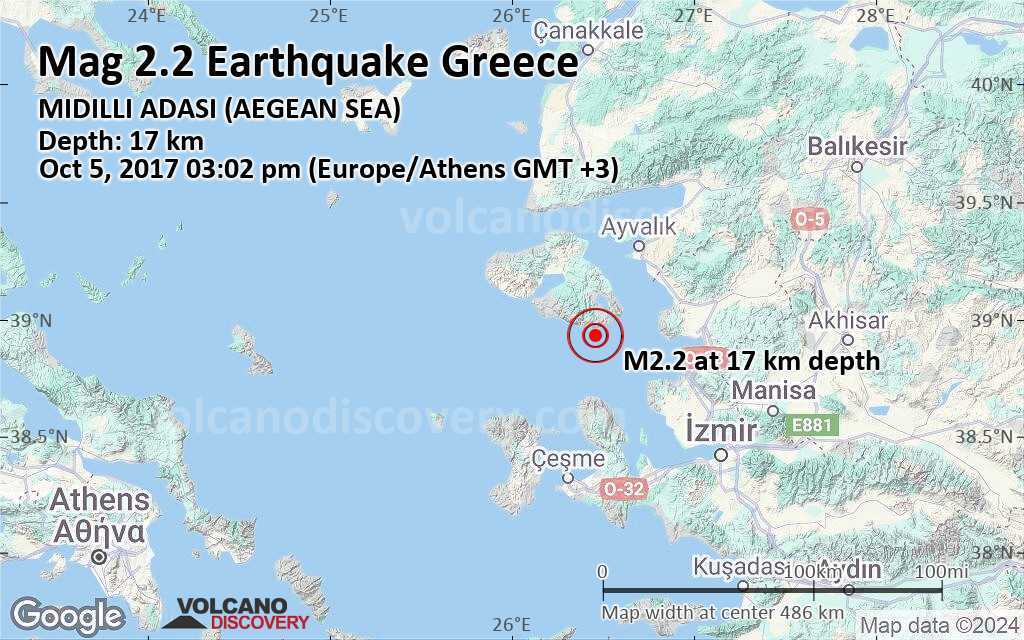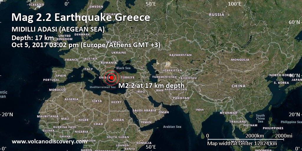 Weak Mag 2 2 Earthquake MIDILLI ADASI (AEGEAN SEA) on Thursday Oct