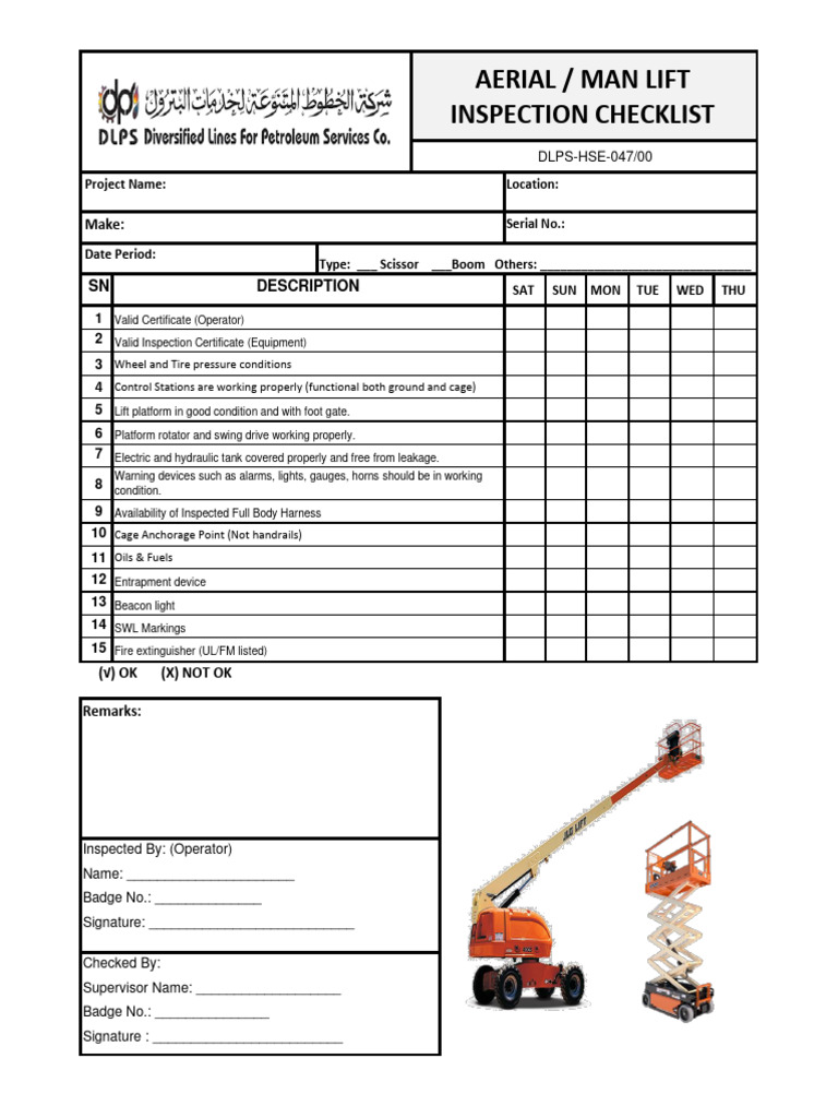 47 Aerial Man Lift Inspection Checklist PDF