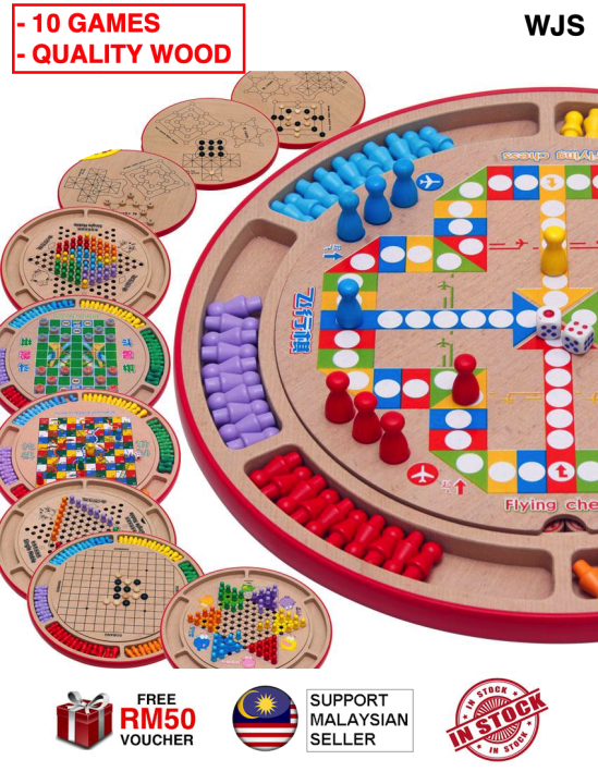 (10 GAMES IN ONE) WJS Multi functional Chess Children Wooden Checkers