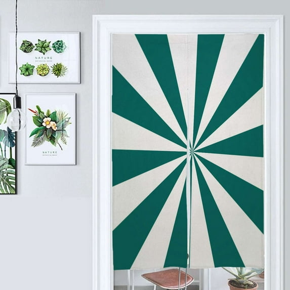 Aesthetic Dark Green And White Sunburst Door Curtain Nordic Living Room