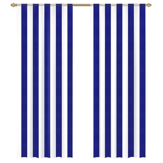 Aesthetic Dark Blue And White Vertical Modern Tulle Window Curtains for