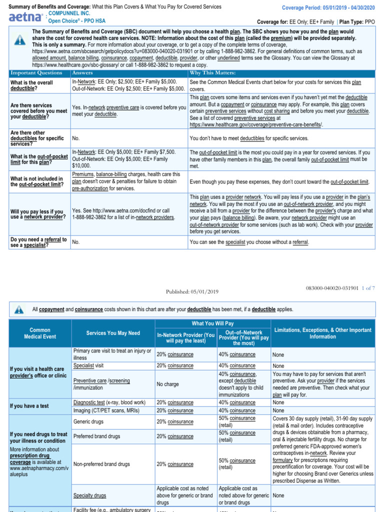 Aetna Silver Plan Ppo SBC Compunnel PDF Deductible Social Programs