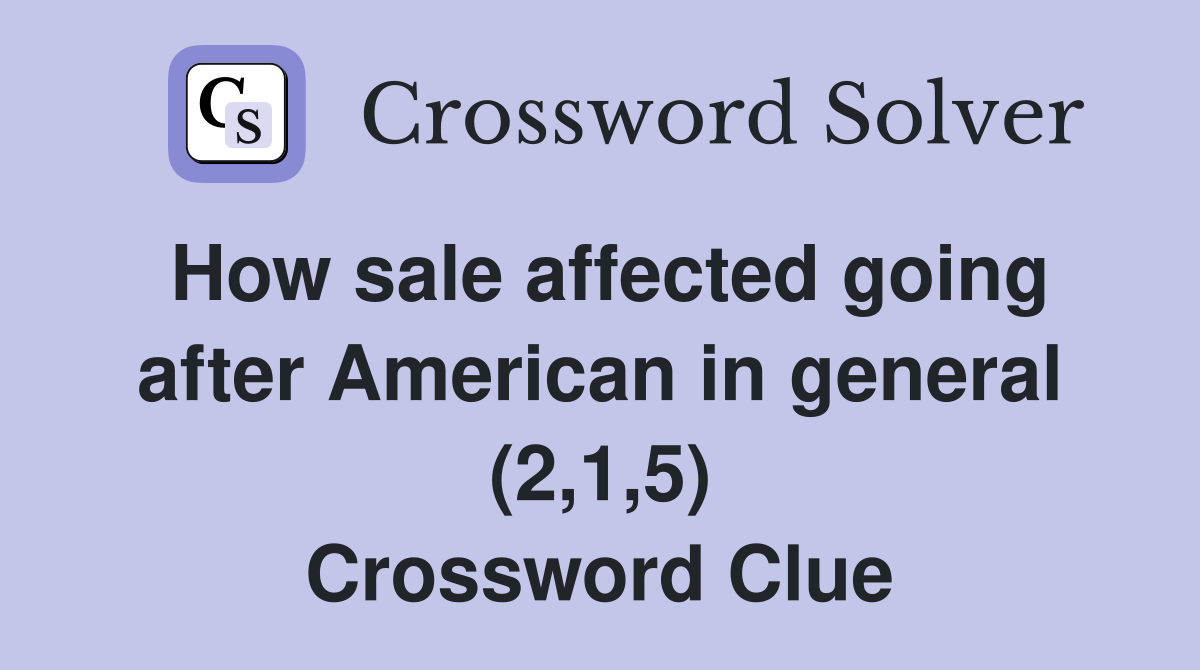 How sale affected going after American in general (2 1 5) Crossword