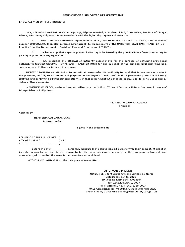 Affidavit of Authorization PDF Power Of Attorney Civil Law