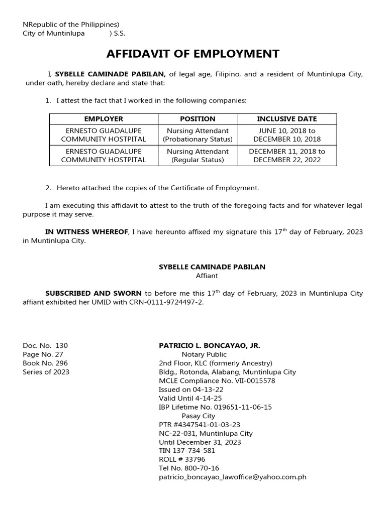 Here are some of the images for Affidavit Of Employment Template that we found in our website database.