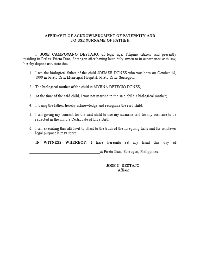 AFFIDAVIT OF ACKNOWLEDGMENT OF PATERNITY AND USF PDF