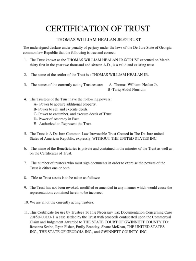 Certification of Trust: Thomas William Healan Jr ©Trust PDF