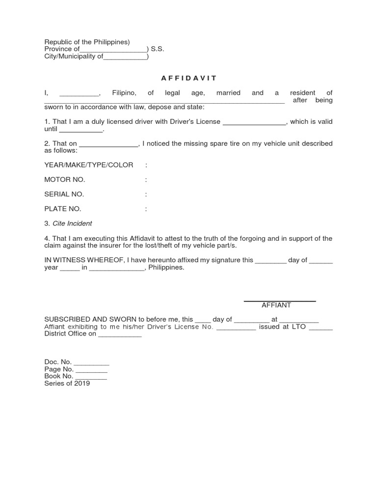 Affidavit of Loss PDF