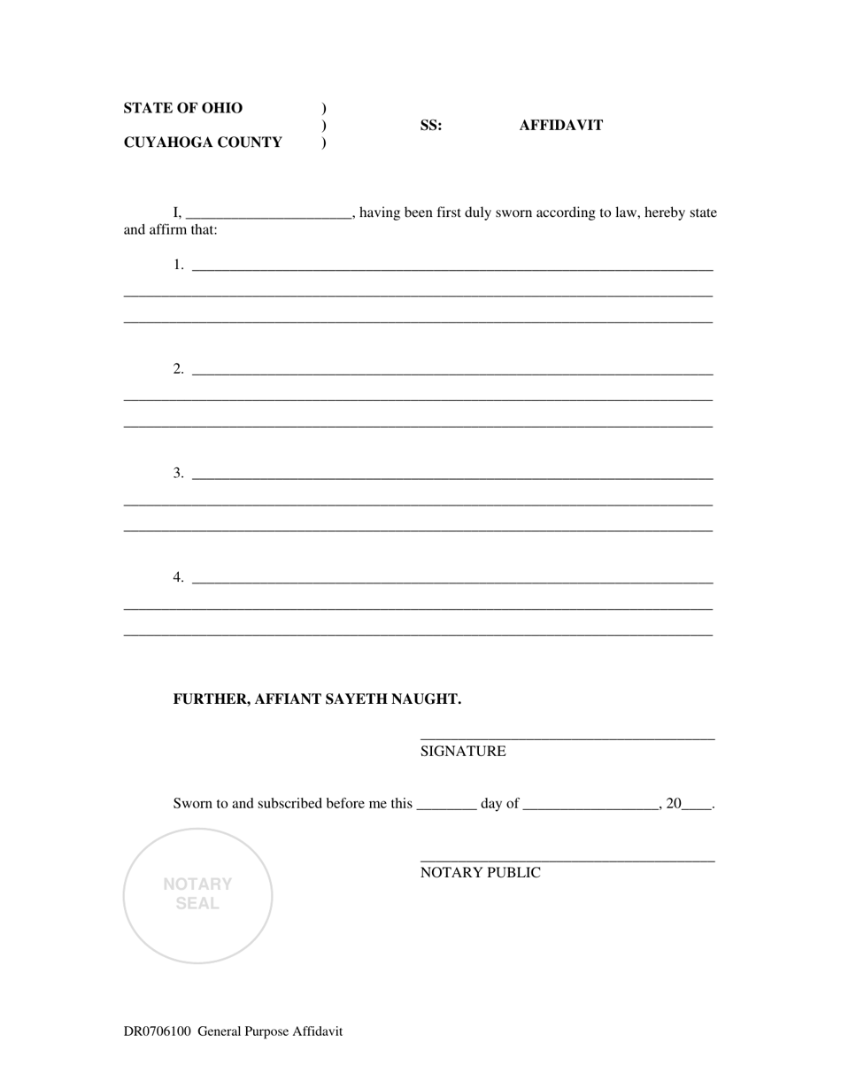 Cuyahoga County Ohio General Purpose Affidavit Fill Out Sign Online