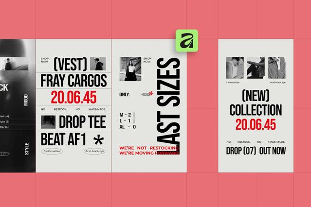 12款极简都市服装INS图文主图电商宣传海报详情长图排版PSD设计模板Shadow Hypebeast Instagram Template